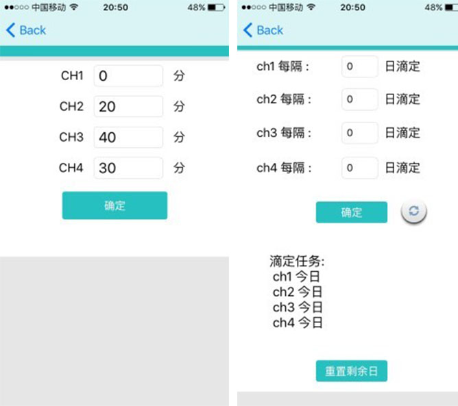 点击右下角“+”—“定时”,直接勾选所需的滴定时间,点击“保存”系统会自动计算滴定次数及对应的时间进行滴定。若有需求,点击“分钟”及“隔日”可将滴定任务精确到分钟,以及隔多少天执行一次任务。 ;