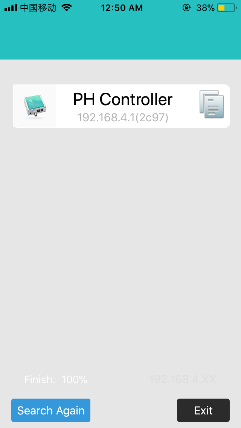 2、 打开应用,系统自动搜索设备。点击IP进入app界面(图以安卓版为例)。注意:若搜索不到设备,请退出程序重新打开。如上述做法无效,请重置Wi-Fi信号后尝试。