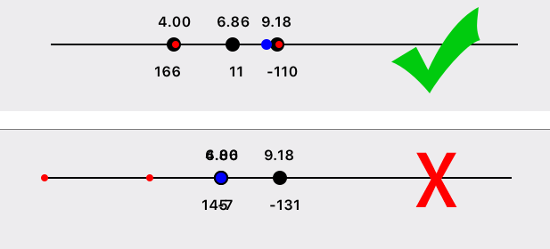 3) 红点:校准计算辅助点,三点校准完成后,左右两红点与左右黑点重合度越高,校准有效性则越高。